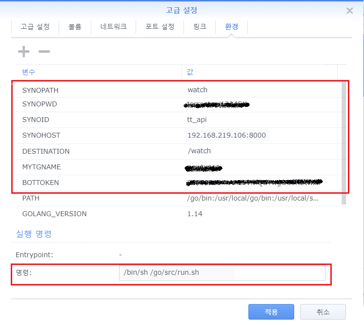 이렇게 하면 시놀에서 Golang을 실행할 수 있는 환경이 만들어집니다.