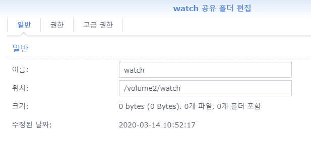 - Download Station에서 감시할 'watch'라는 새 공유 폴더를 생성합니다.