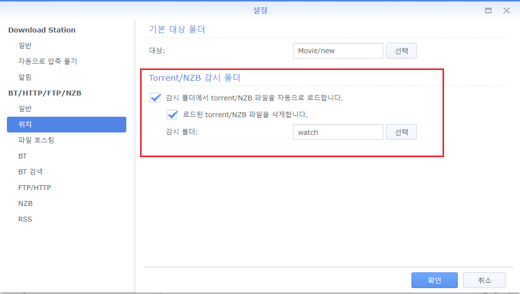 - Download Station 감시 설정
