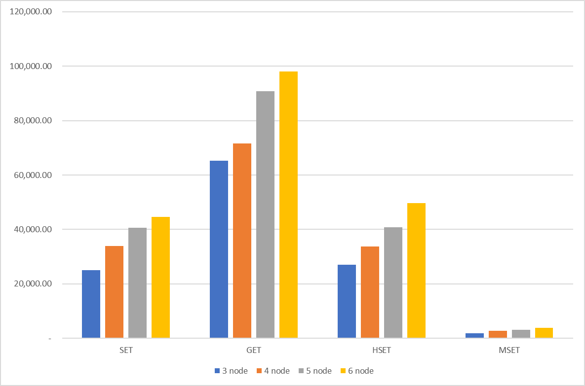 redis-benchmark를 사용해서 밴치마킹했고, 5번씩 테스트한 평균값으로 결과를 취합했습니다. - node별로 샤딩 하여 구성하였고, 현업에서는 데이터 유실방지를 위해 HA 구성을 하므로 node하나에 master-slave로 리플리케이션 구성하였습니다.